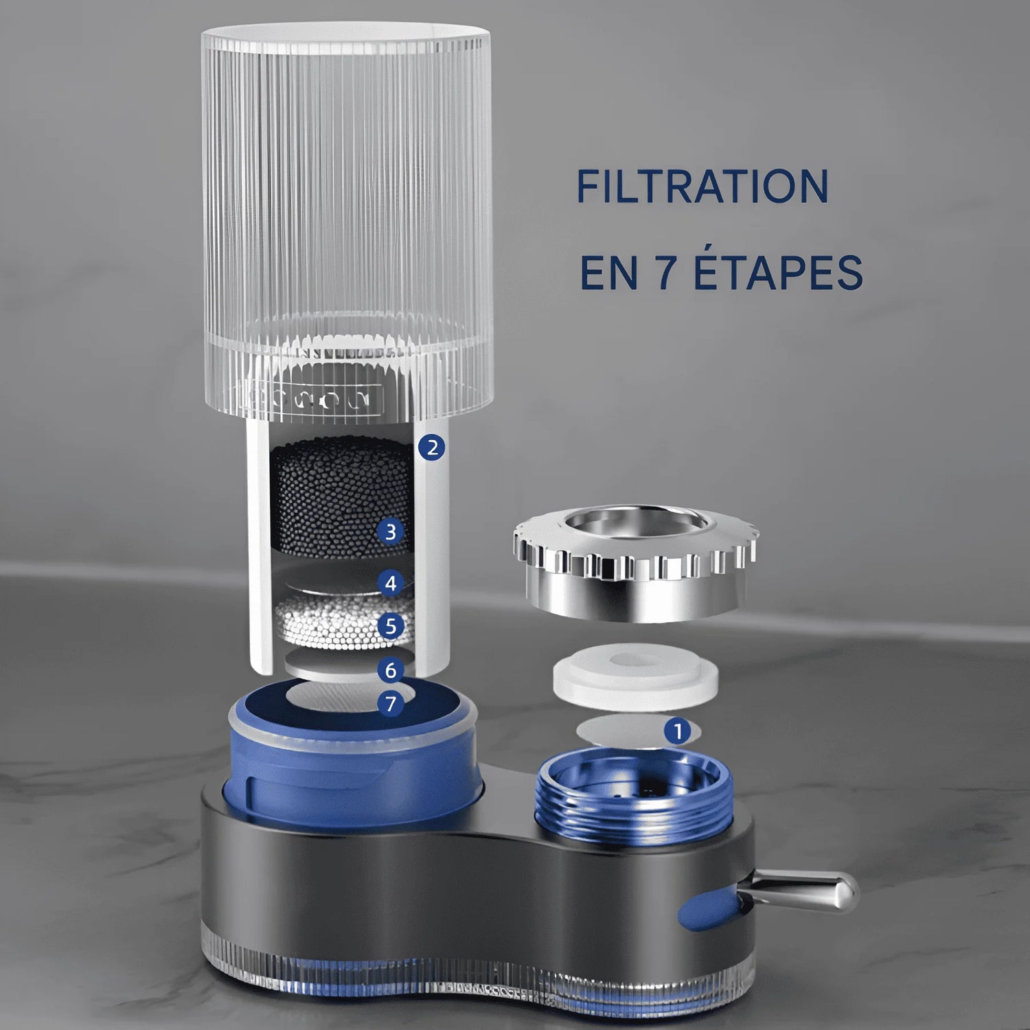 Contrairement aux filtres classiques à 2 ou 3 étapes, notre purificateur utilise un système avancé de 7 niveaux de filtration :