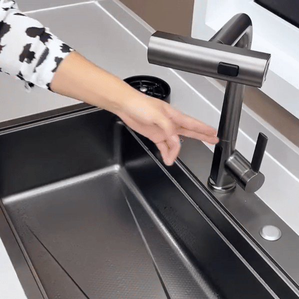 Doté de 3 modes de sortie d'eau, Notre robinet de cuisine avec douchette cascade 3 en 1 pivotante 360° est votre compagnon ultime pour une expérience de cuisine pratique et polyvalente.